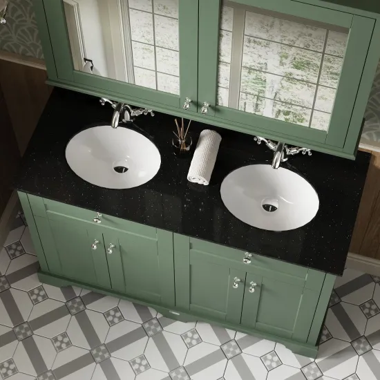 Old London Floor Standing 4 Door Vanity Unit with 1 Tap Hole Double Basin Black Marble Top 1200mm - Hunter Green
