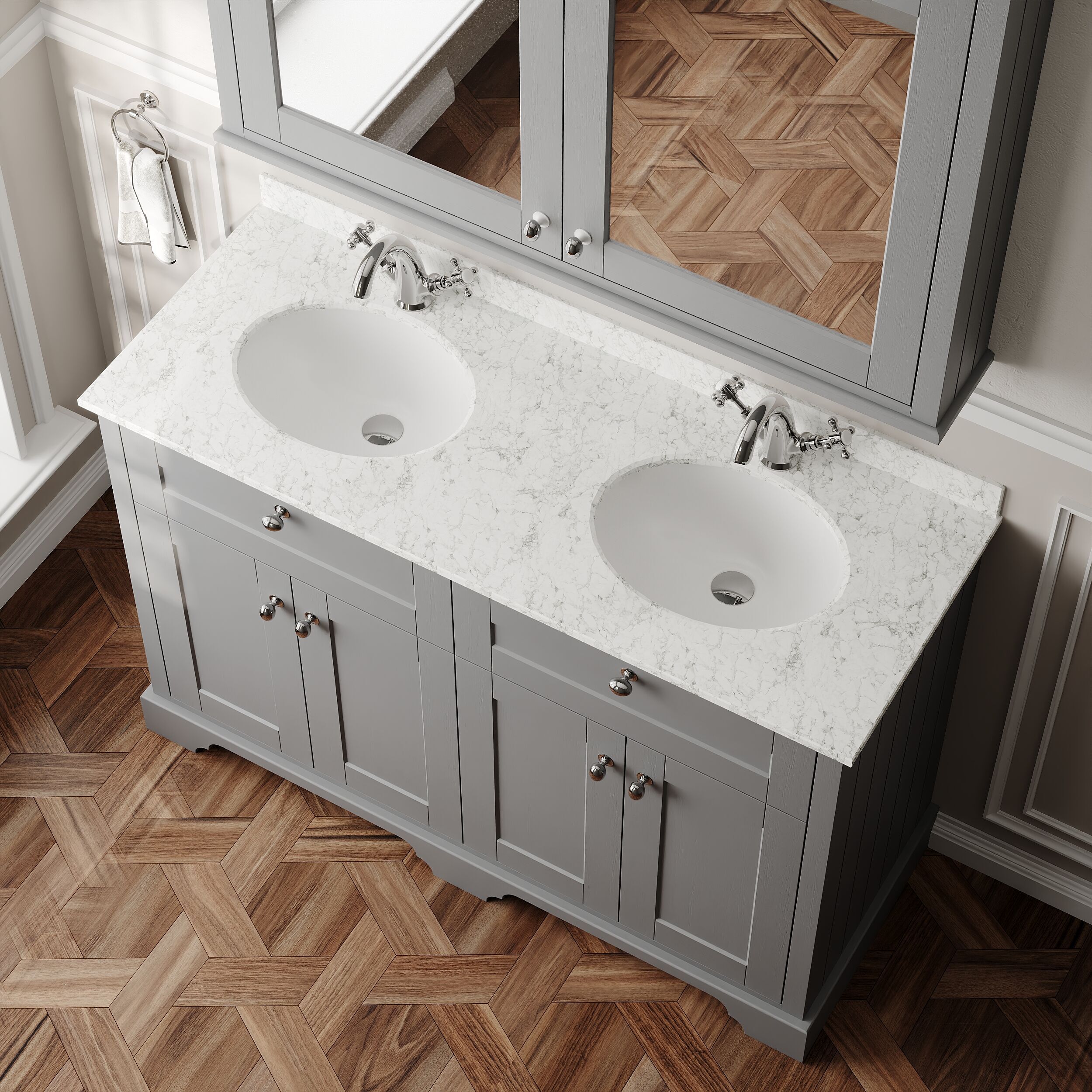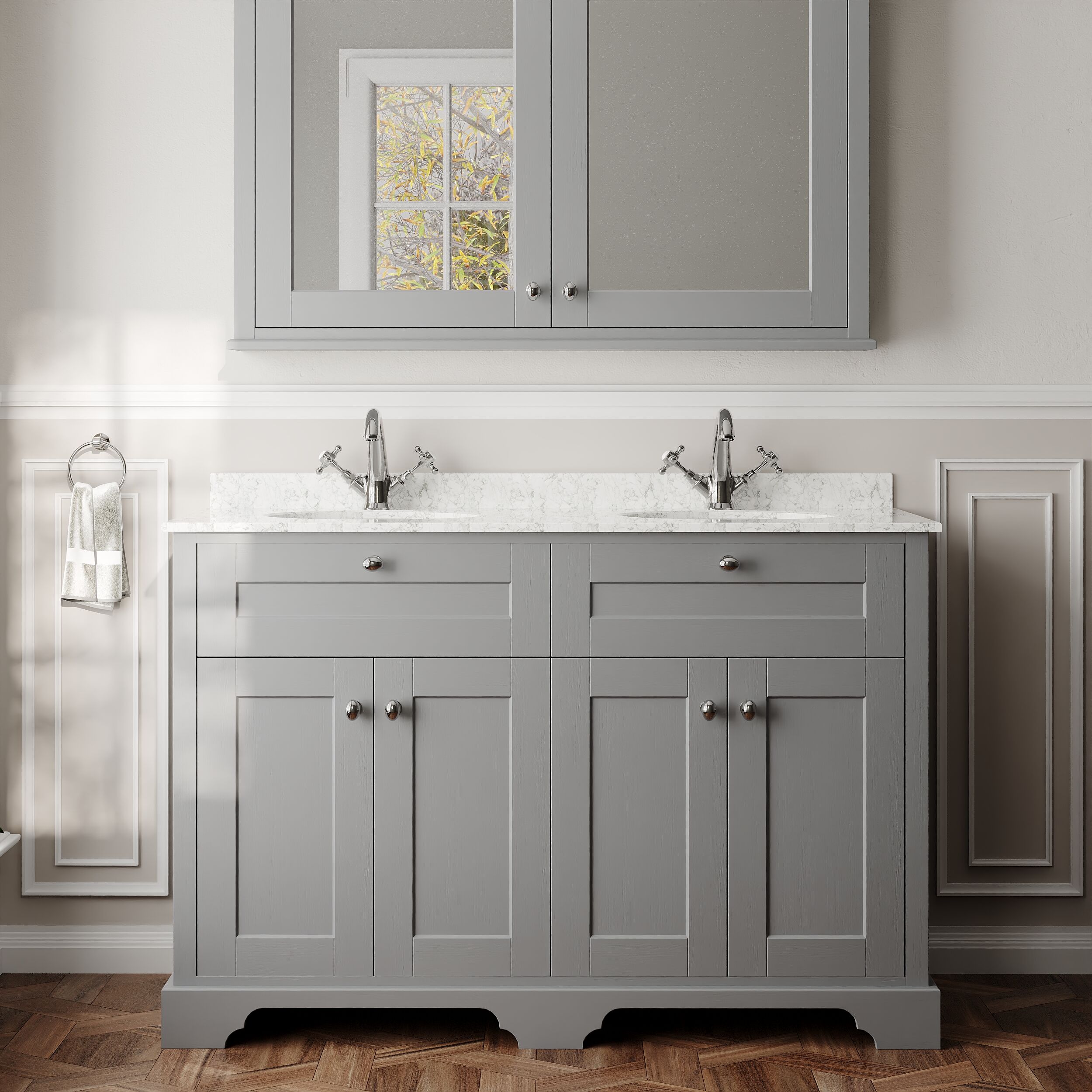 Hudson Reed Old London 1220mm Storm Grey Floor Standing Vanity Unit with Grey Marble Top Double Basin