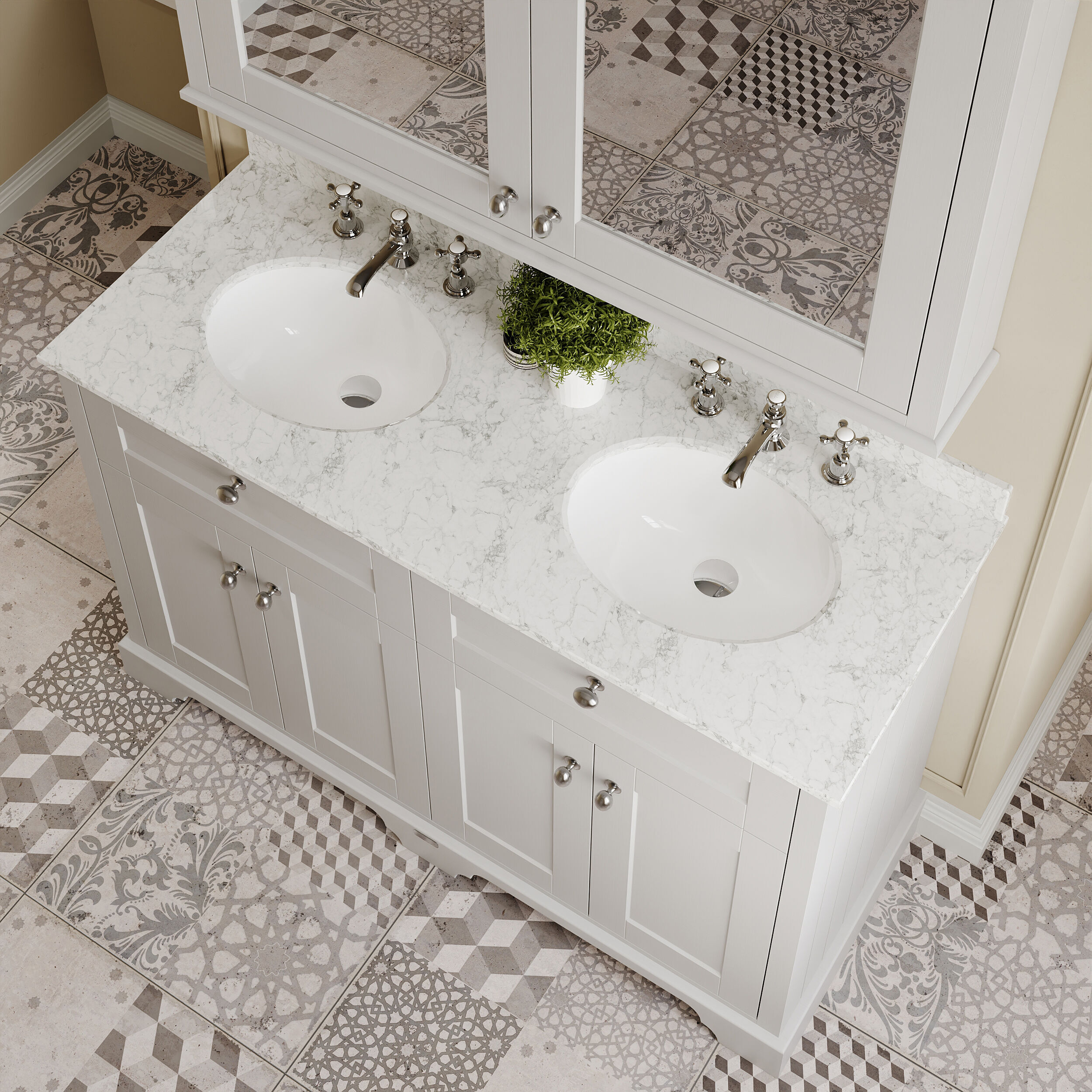 Hudson Reed Old London 1220mm Timeless Sand Floor Standing 4 Door Vanity Unit With Grey Marble Top Double Basin