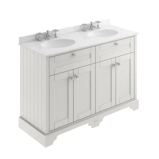 Old London Floor Standing 4 Door Vanity Unit with 3 Tap Hole Double Basin Grey Marble Top 1200mm - Timeless Sand