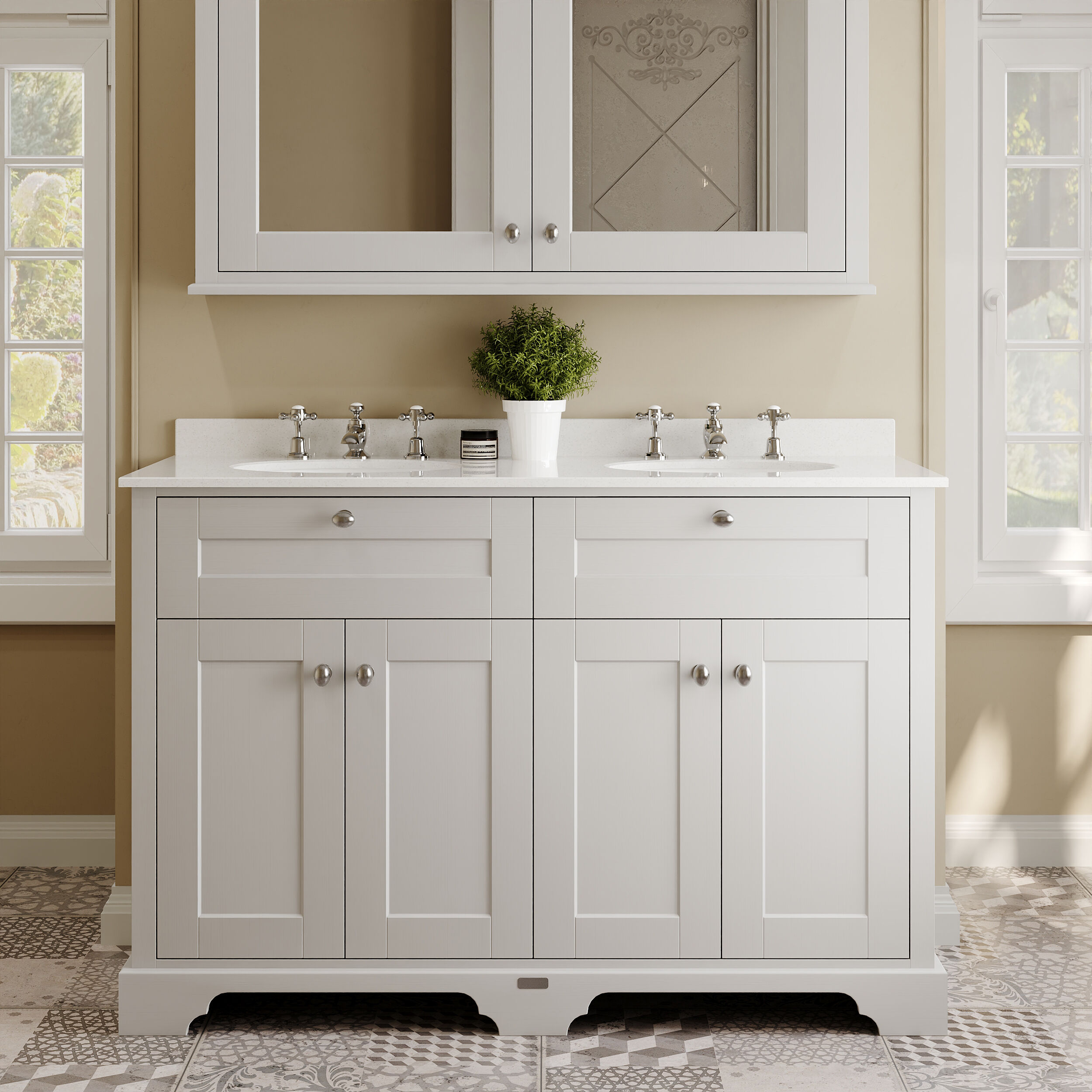Hudson Reed Old London 1220mm Storm Grey Floor Standing 4 Door Vanity Unit with White Marble Top Double Basin