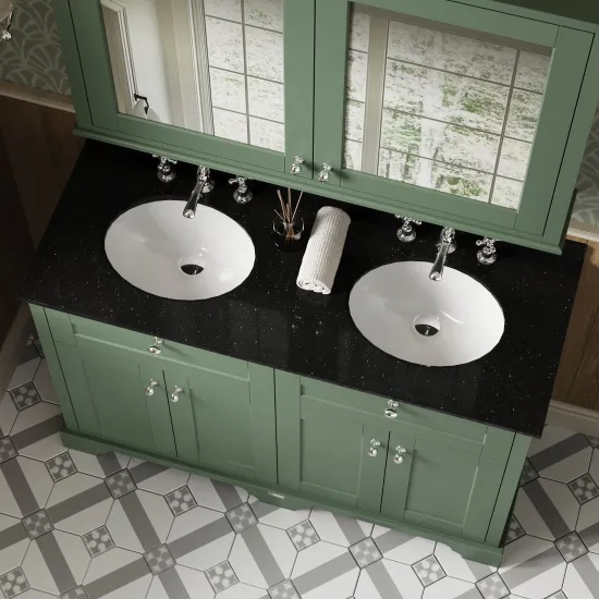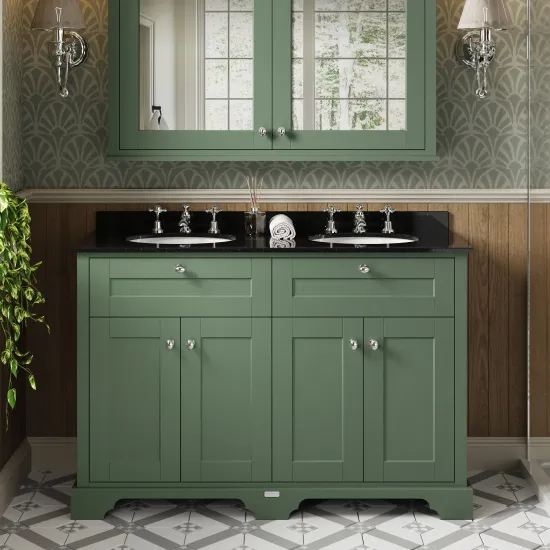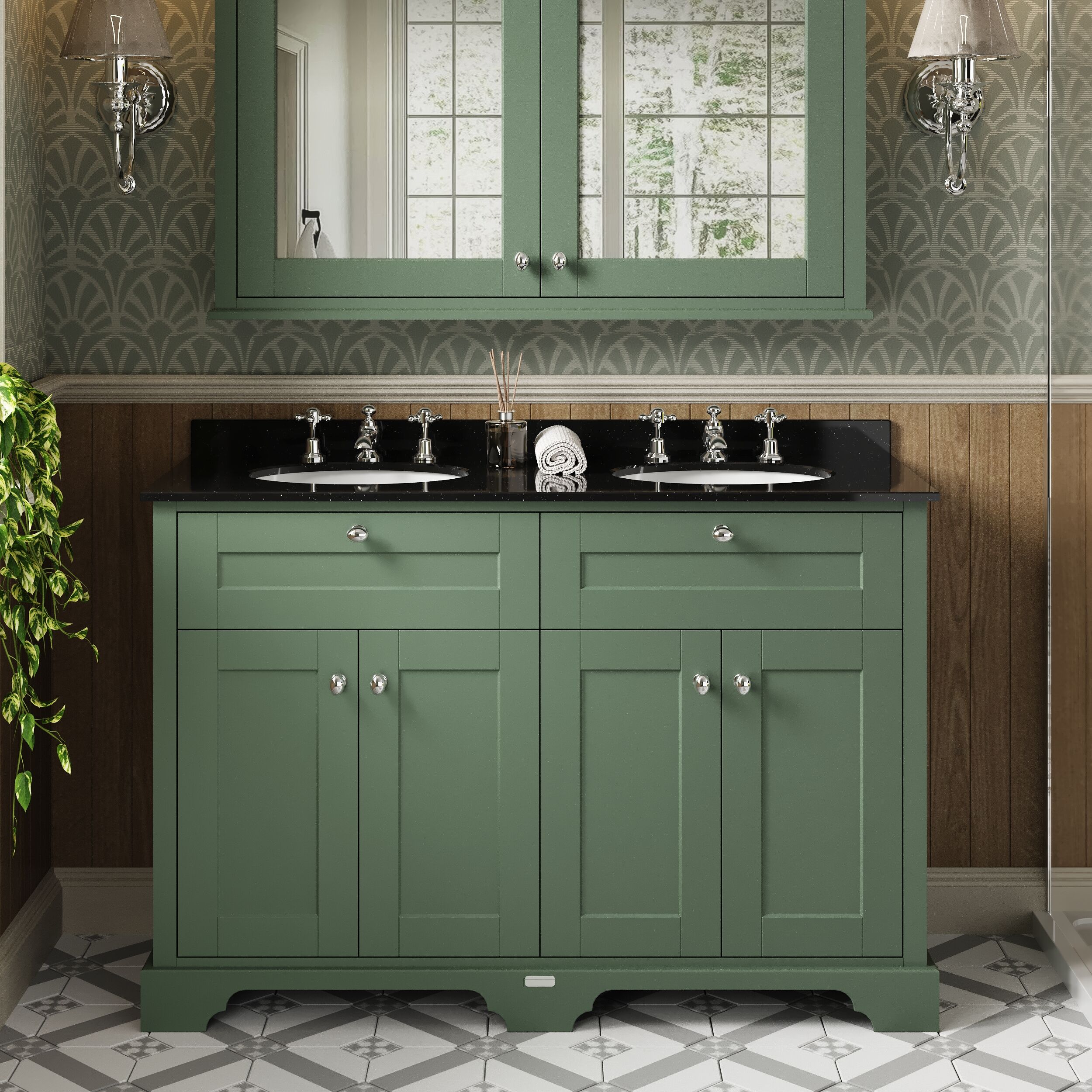 Old London Floor Standing 4 Door Vanity Unit with Double 3 Tap Hole Basin Black Marble Top 1200mm - Hunter Green