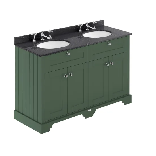 Hudson Reed Old London 1200mm Hunter Green Floor Standing Vanity Unit With Black Marble Top Double Basin