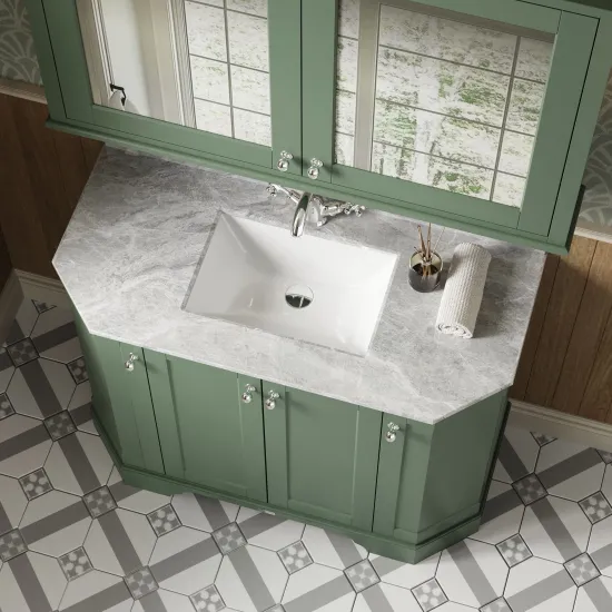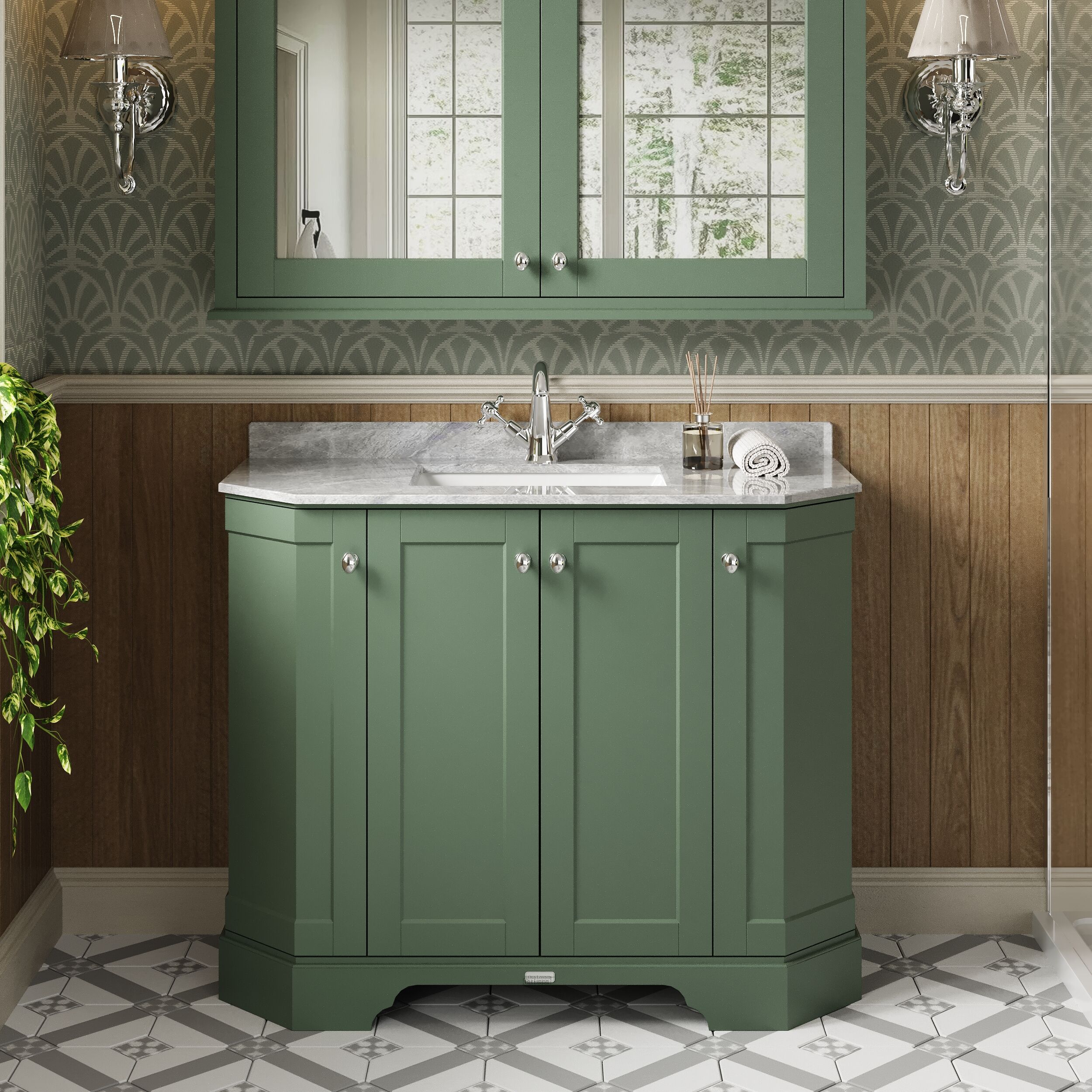 Old London Floor Standing Angled 4 Door Vanity Unit with 1 Tap Hole Grey Marble Top 1000mm - Hunter Green