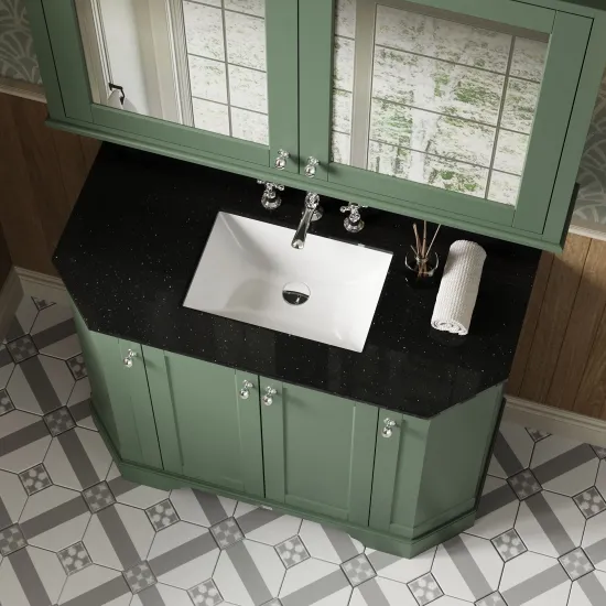 Old London Floor Standing Angled 4 Door Vanity Unit with 3 Tap Hole Black Marble Top 1000mm - Hunter Green