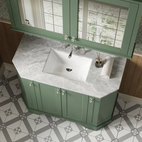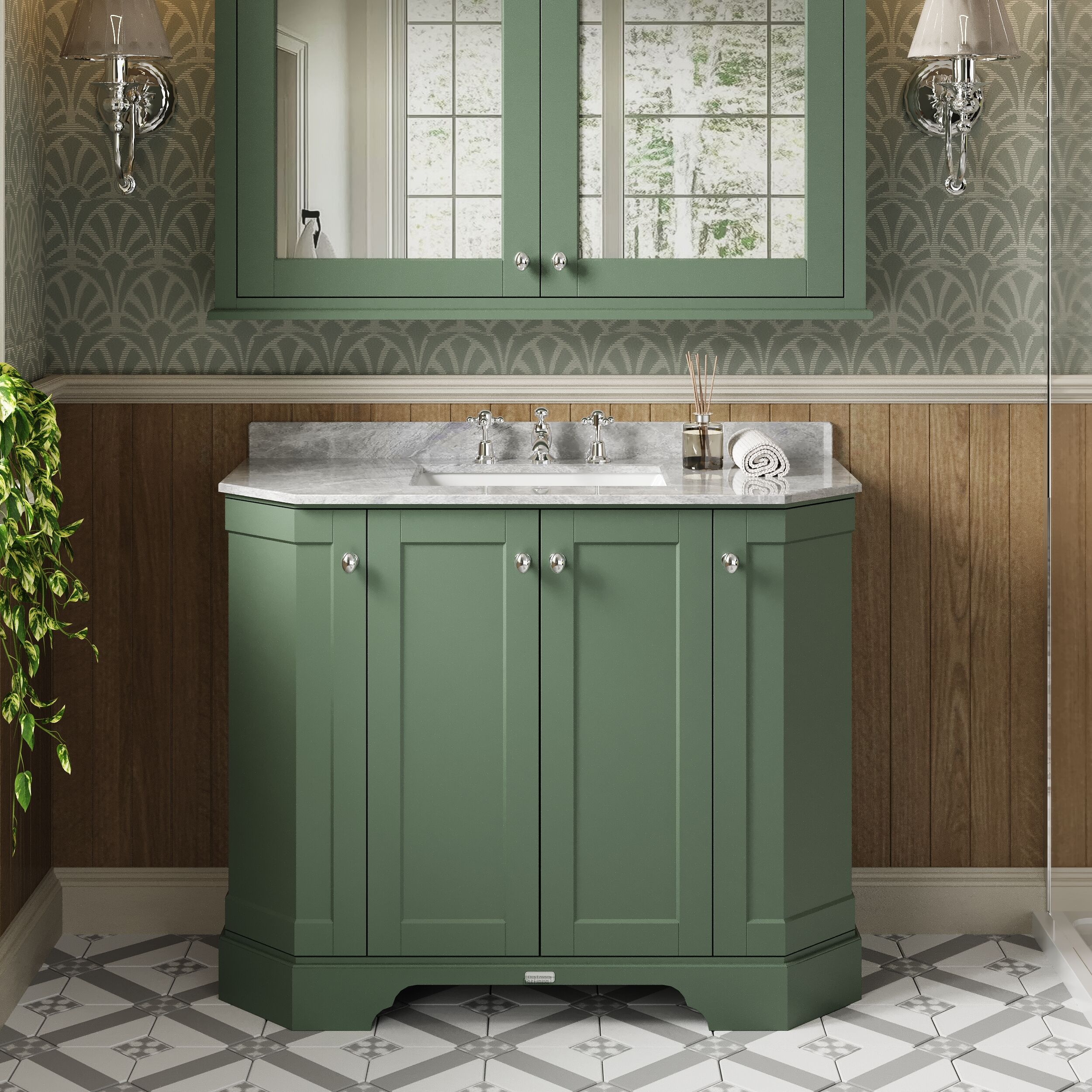 Old London Floor Standing Angled 4 Door Vanity Unit with 3 Tap Hole Grey Marble Top 1000mm - Hunter Green