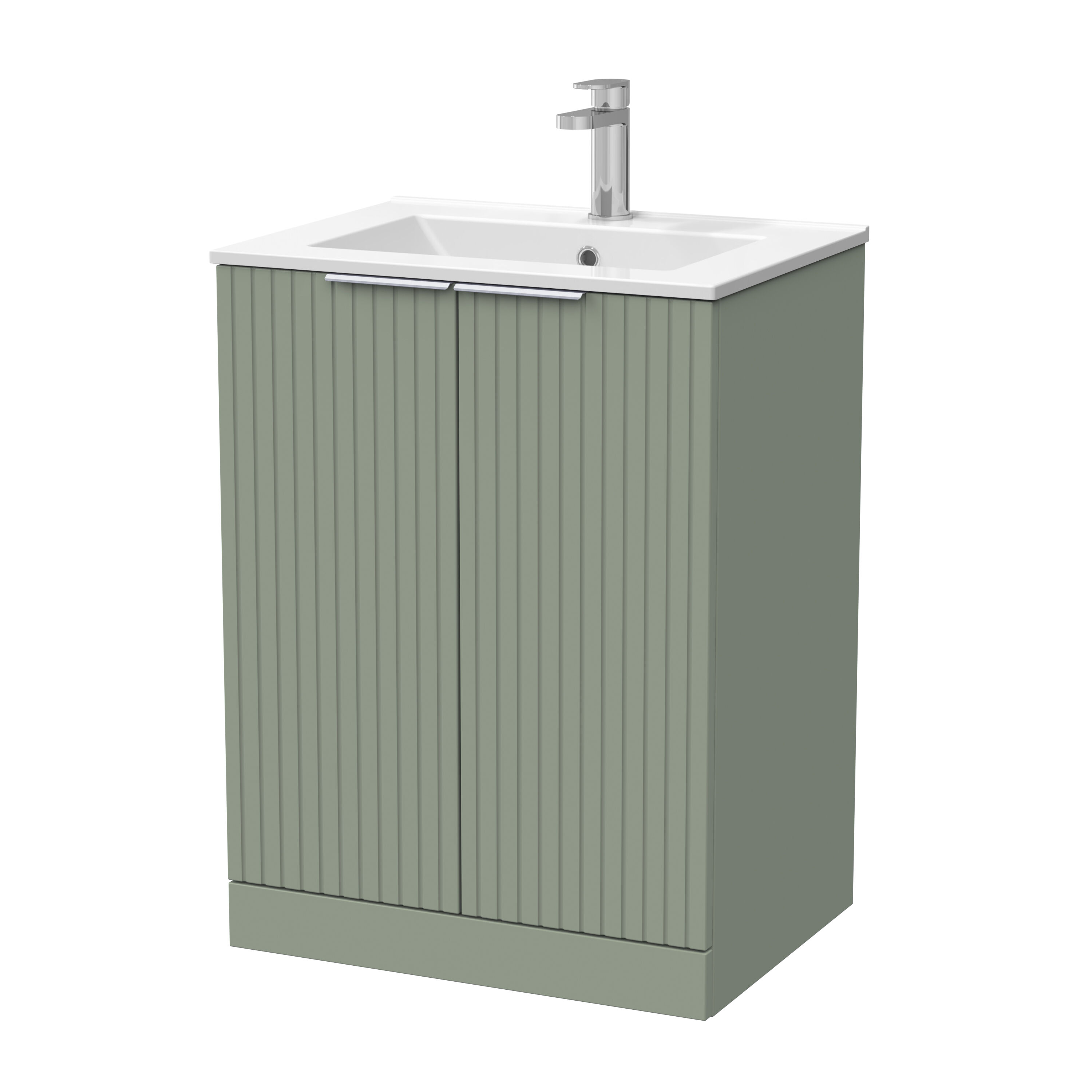 nuie Lux Flume 600mm 2-Door Floor Standing Unit with 1 Tap Hole Minimalist Basin Top - Fern Green