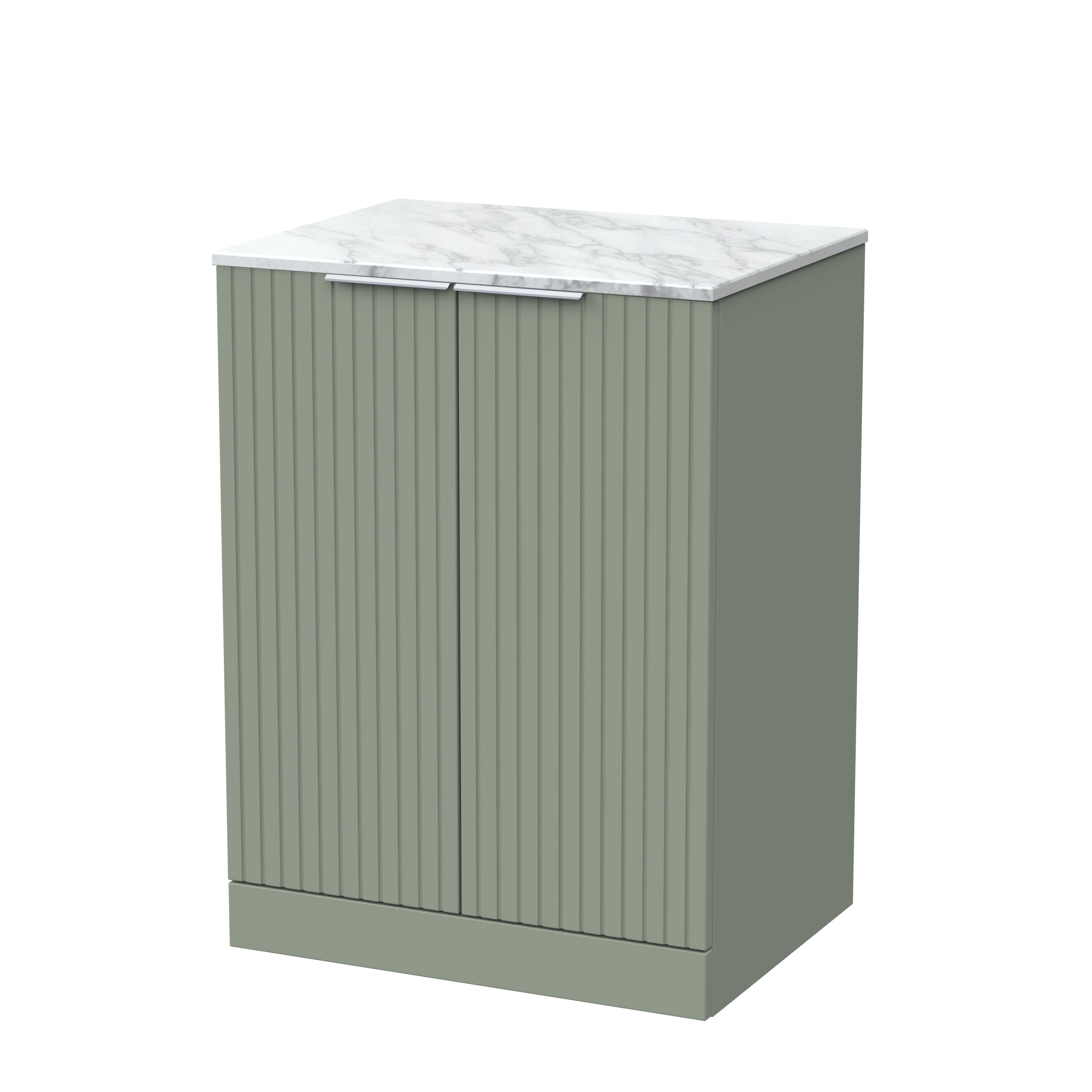 nuie Lux Flume 600mm 2-Door Floor Standing Unit with Carrera Marble Top - Fern Green