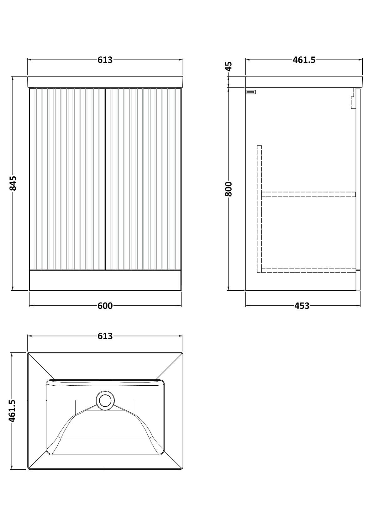 Flume 600mm 2-Door Floor Standing Unit with Contemporary Fireclay Basin - 0 Tap Holes