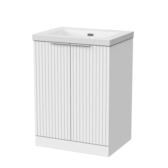 nuie Lux Flume 600mm 2-Door Floor Standing Unit with Contemporary Fireclay Basin - 0 Tap Holes - Matt White