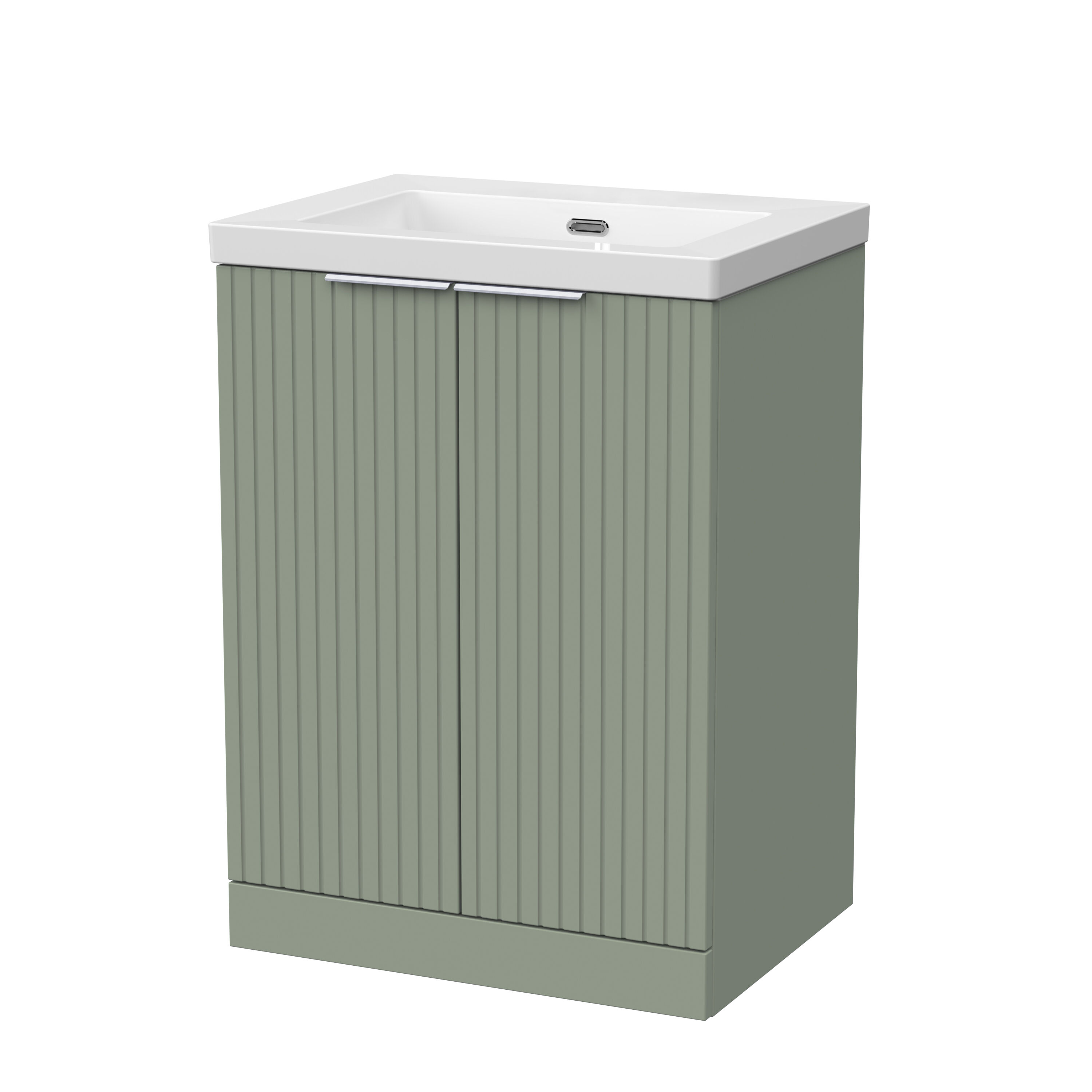 nuie Lux Flume 600mm 2-Door Floor Standing Unit with Contemporary Fireclay Basin - 0 Tap Holes - Fern Green