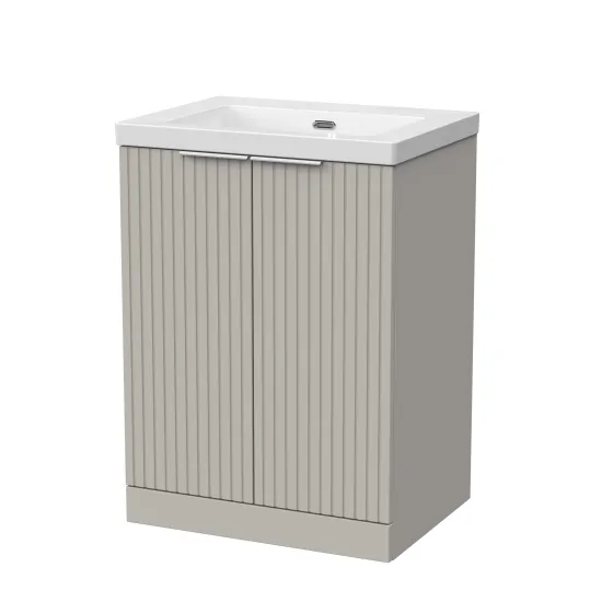 nuie Lux Flume 600mm 2-Door Floor Standing Unit with Contemporary Fireclay Basin - 0 Tap Holes - Pebble Grey