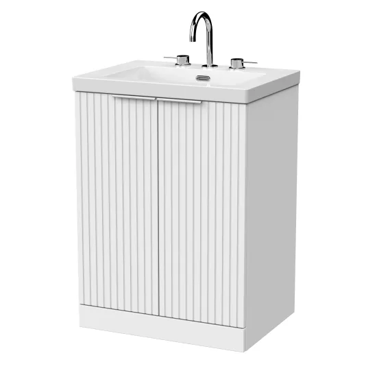 nuie Lux Flume 600mm 2-Door Floor Standing Unit with Contemporary Fireclay Basin - 3 Tap Holes - Matt White