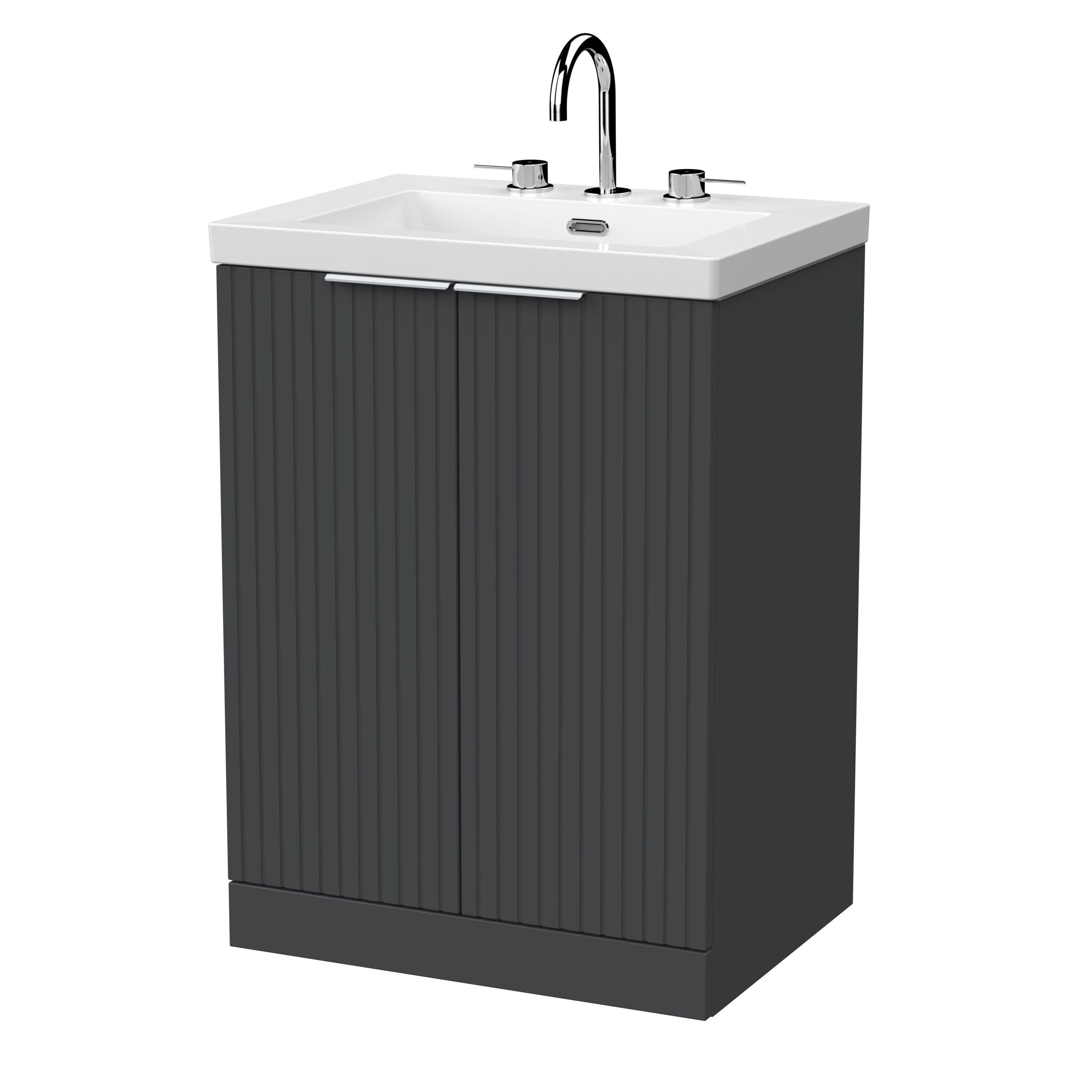 Flume 600mm 2-Door Floor Standing Unit with Contemporary Fireclay Basin - 3 Tap Holes