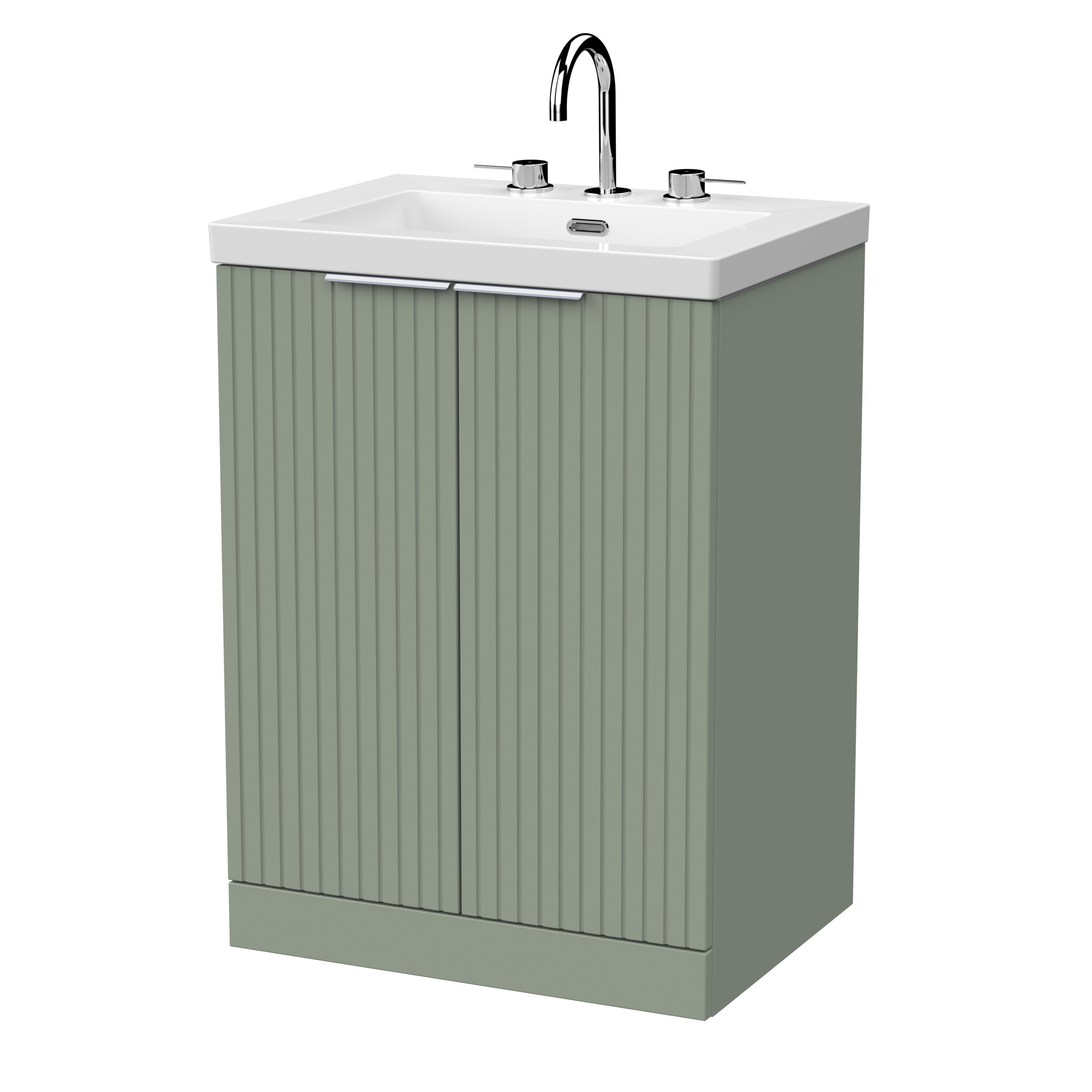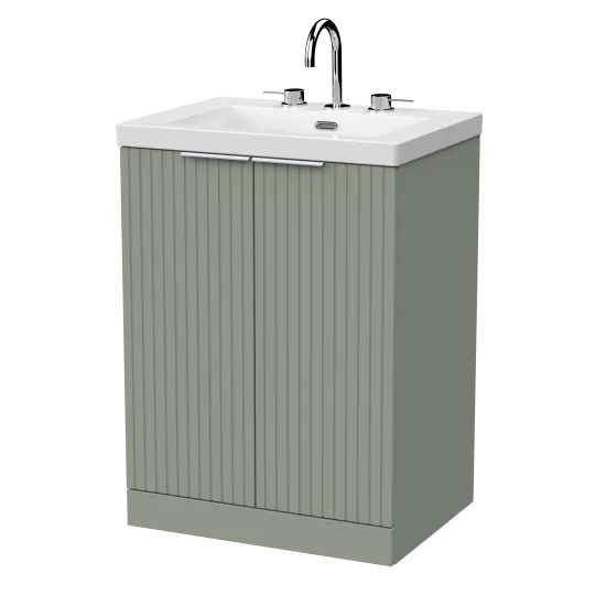 nuie Lux Flume 600mm 2-Door Floor Standing Unit with Contemporary Fireclay Basin - 3 Tap Holes - Fern Green
