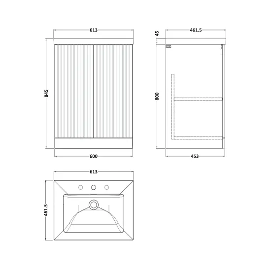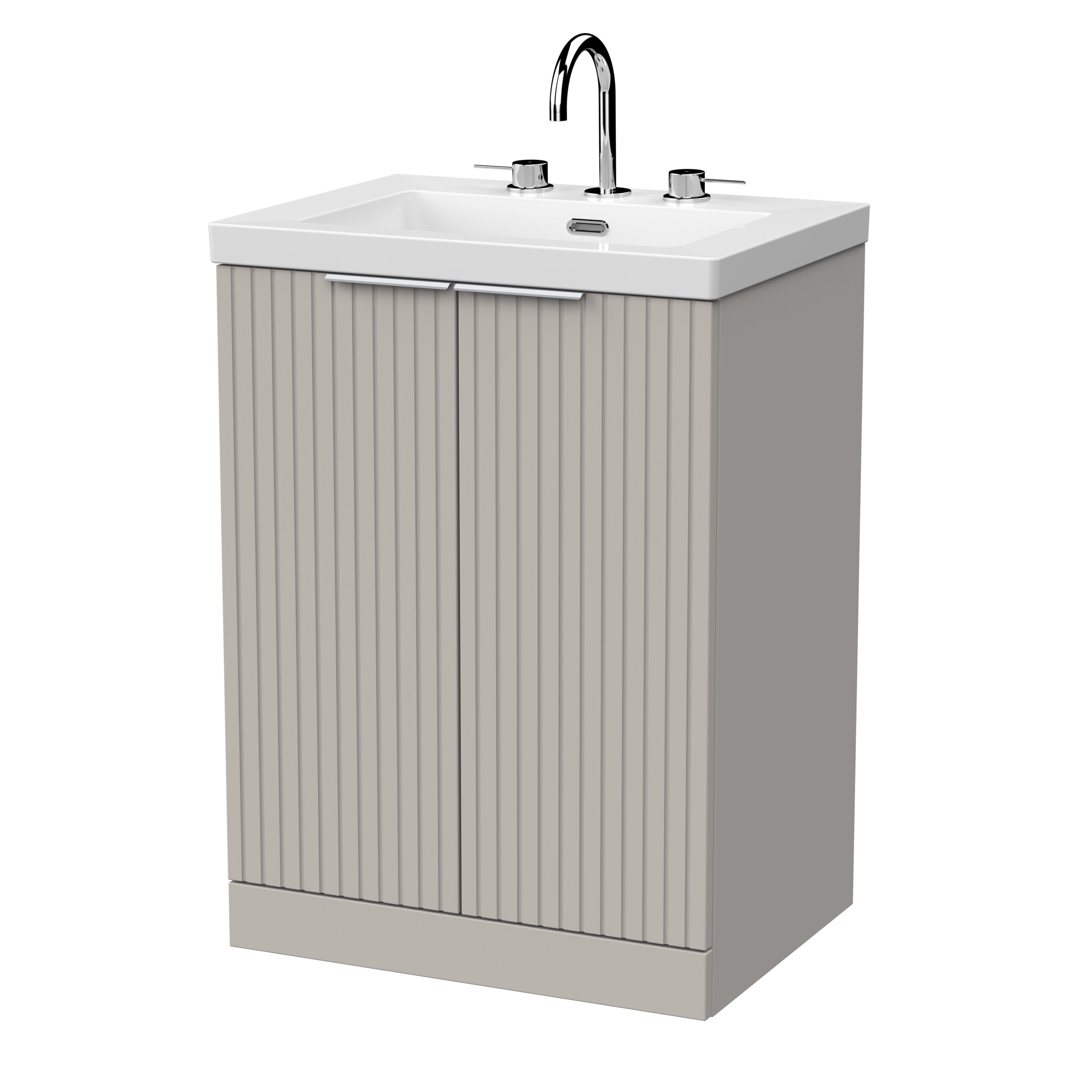 Flume 600mm 2-Door Floor Standing Unit with Contemporary Fireclay Basin - 3 Tap Holes