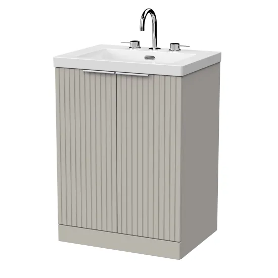 nuie Lux Flume 600mm 2-Door Floor Standing Unit with Contemporary Fireclay Basin - 3 Tap Holes - Pebble Grey