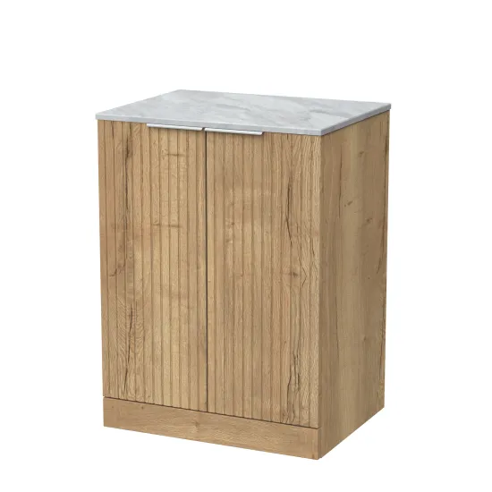 nuie Lux Flume 600mm 2-Door Floor Standing Unit with Grey Marble Top - Autumn Oak