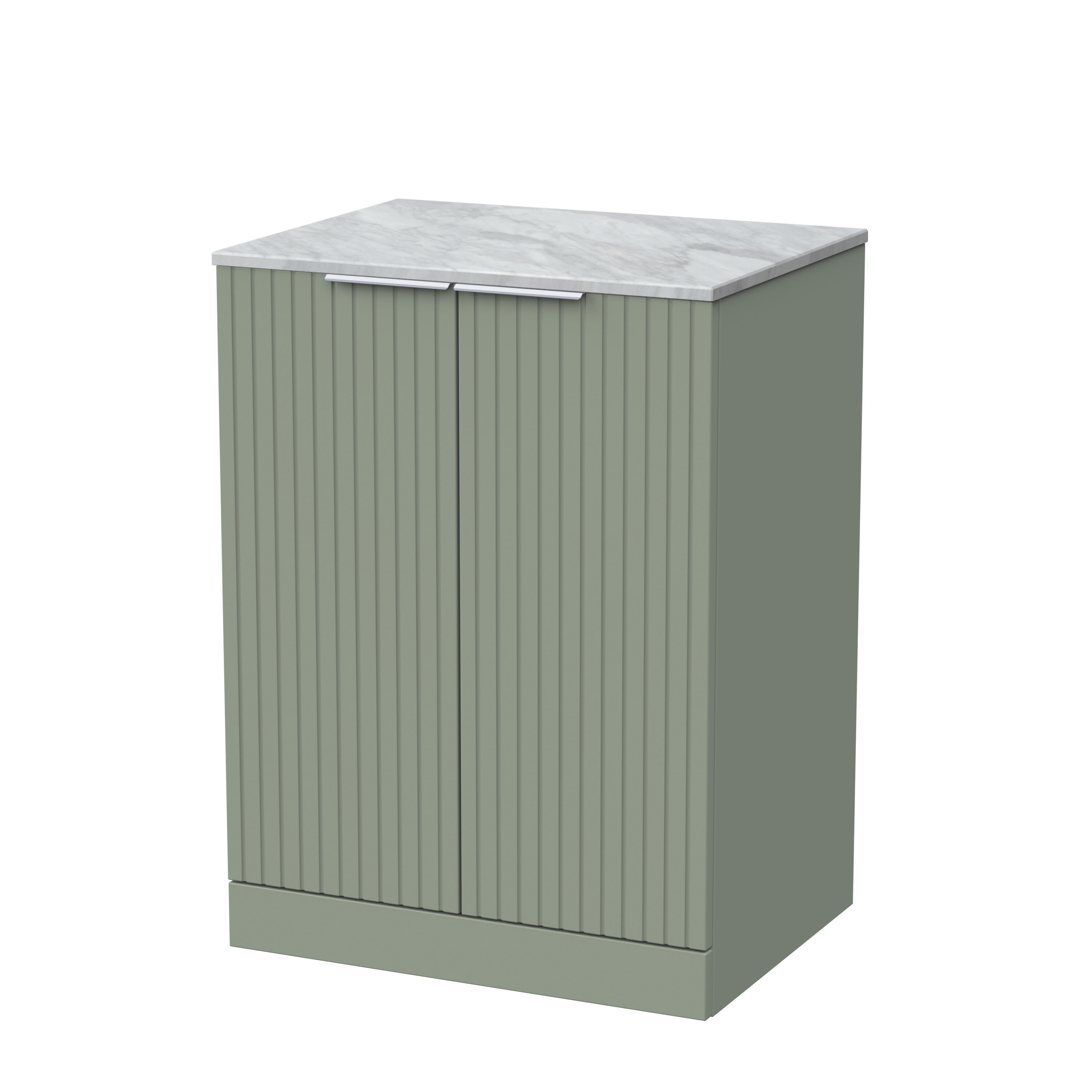 nuie Lux Flume 600mm 2-Door Floor Standing Unit with Grey Marble Top - Fern Green
