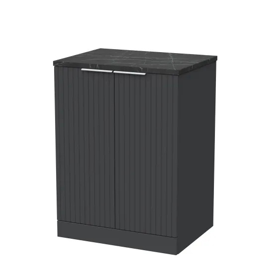 nuie Lux Flume 600mm 2-Door Floor Standing Unit with Laminate Worktop - Soft Black