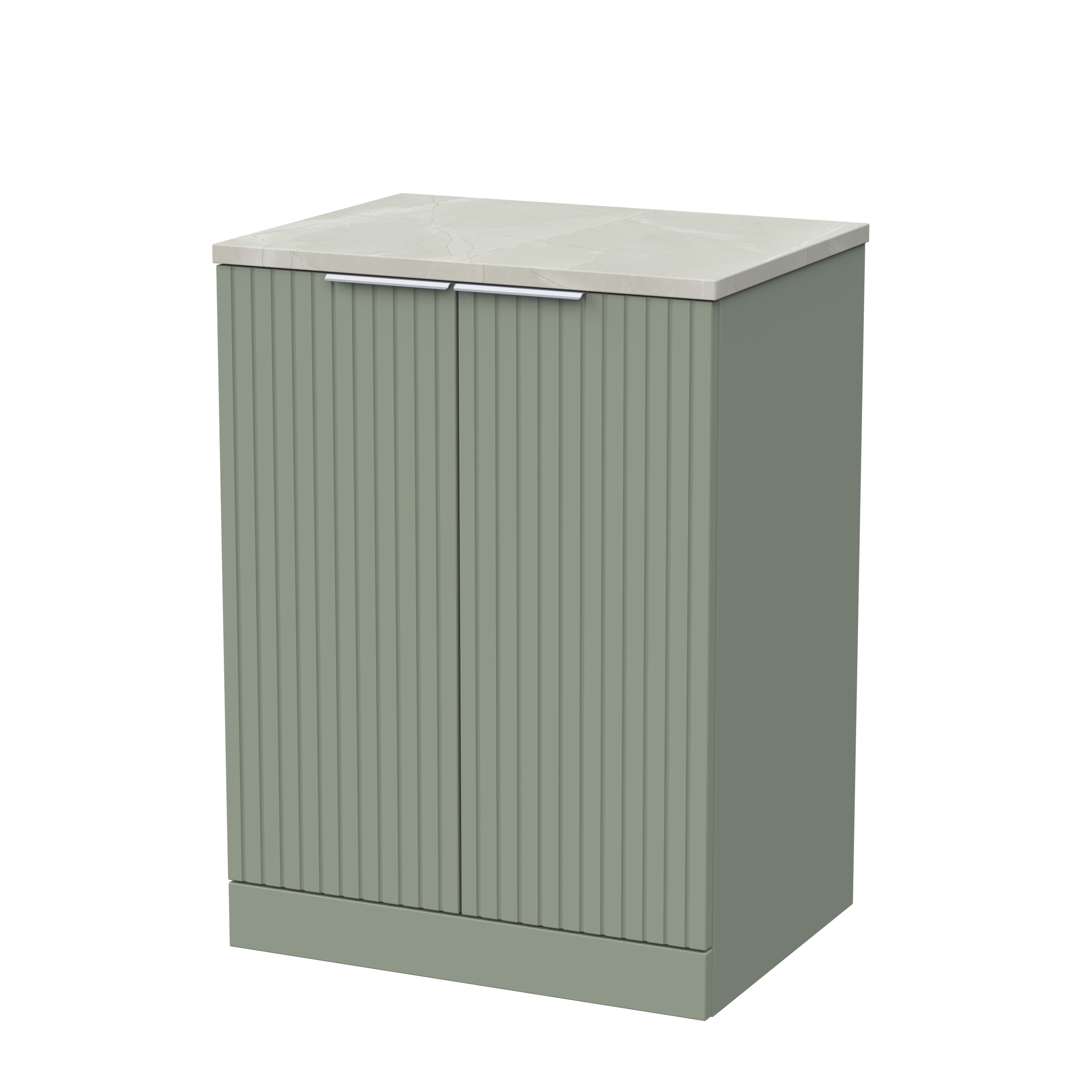 nuie Lux Flume 600mm 2-Door Floor Standing Unit with Laminate Worktop - Fern Green