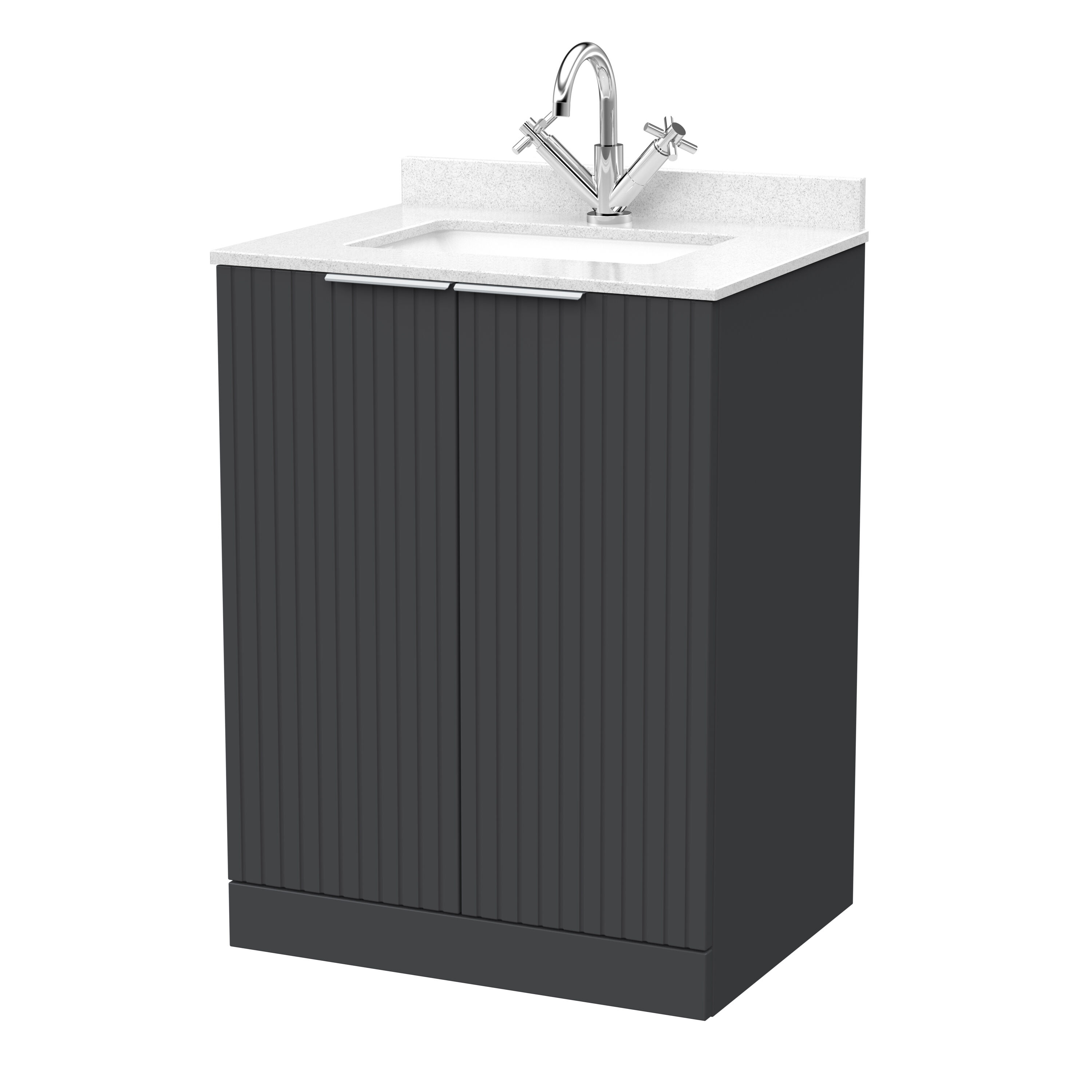 nuie Lux Flume 600mm 2-Door Floor Standing Unit with Single Bowl Marble Top 1 Tap Hole in White - Soft Black
