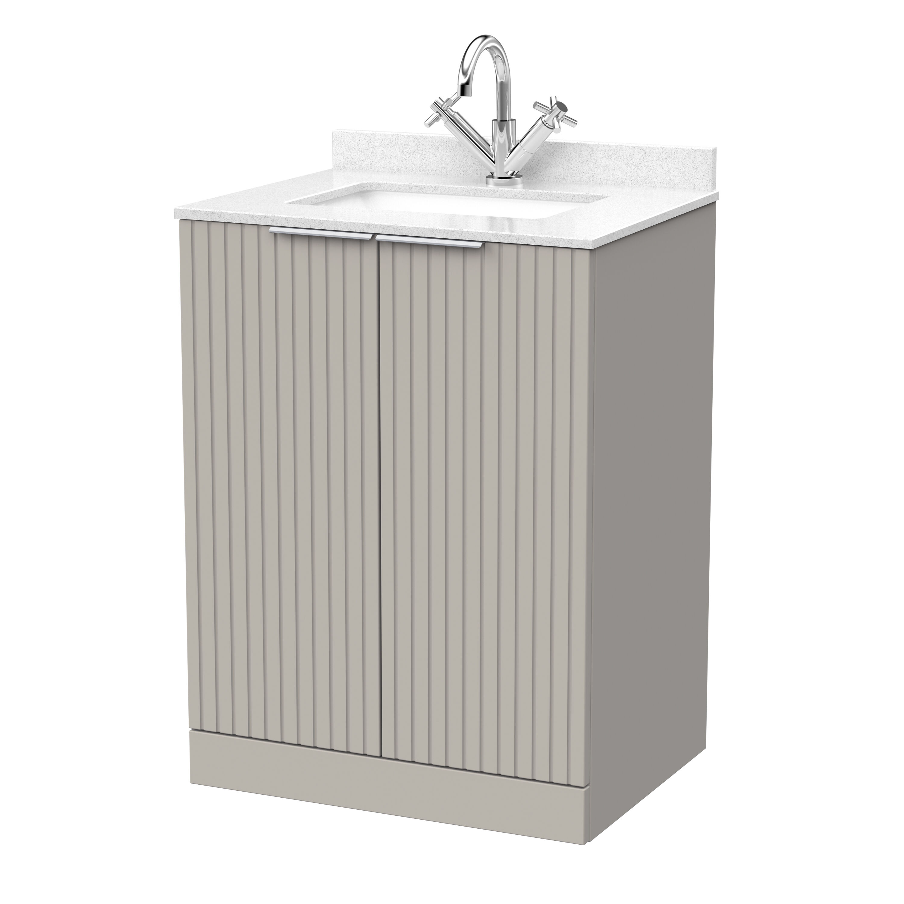 nuie Lux Flume 600mm 2-Door Floor Standing Unit with Single Bowl Marble Top 1 Tap Hole in White - Pebble Grey