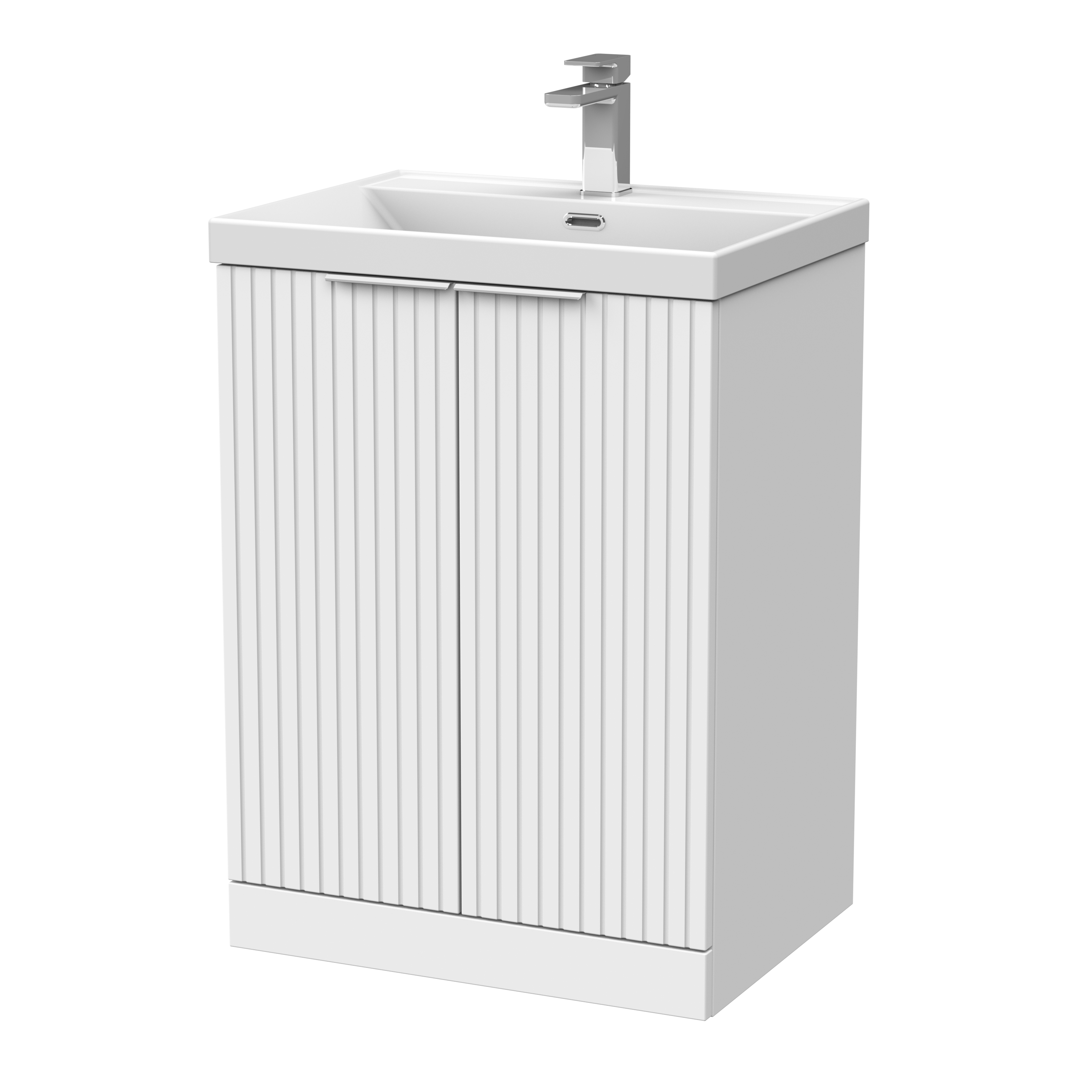 nuie Lux Flume 600mm 2-Door Floor Standing Unit with Thin-Edge Basin - 1 Tap Hole - Matt White