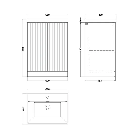 Flume 600mm 2-Door Floor Standing Unit with Thin-Edge Basin - 1 Tap Hole