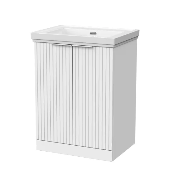 nuie Lux Flume 600mm 2-Door Floor Standing Unit with Traditional Fireclay Basin - 0 Tap Holes - Matt White