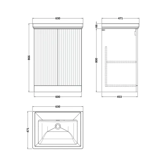 Flume 600mm 2-Door Floor Standing Unit with Traditional Fireclay Basin - 0 Tap Holes