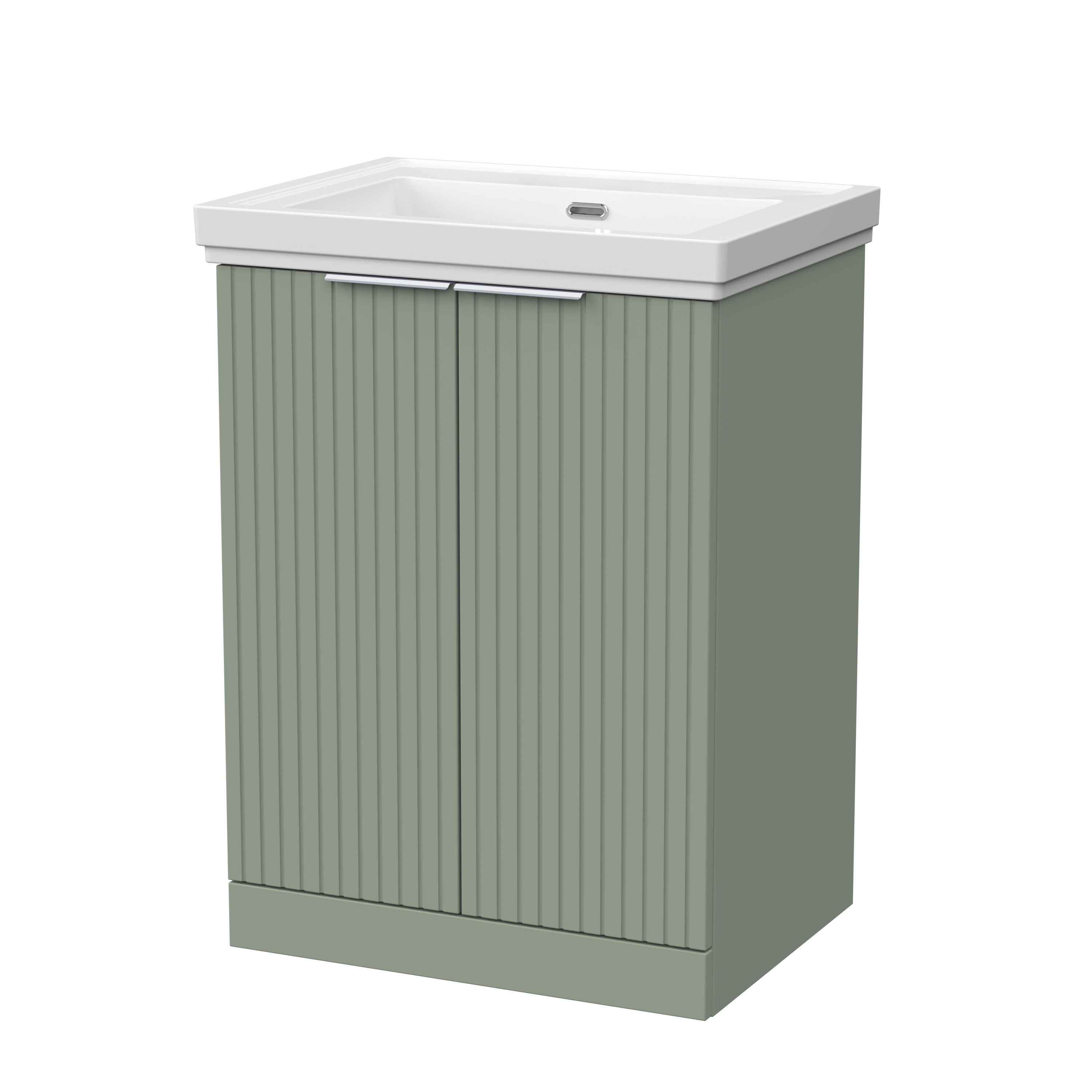 nuie Lux Flume 600mm 2-Door Floor Standing Unit with Traditional Fireclay Basin - 0 Tap Holes - Fern Green