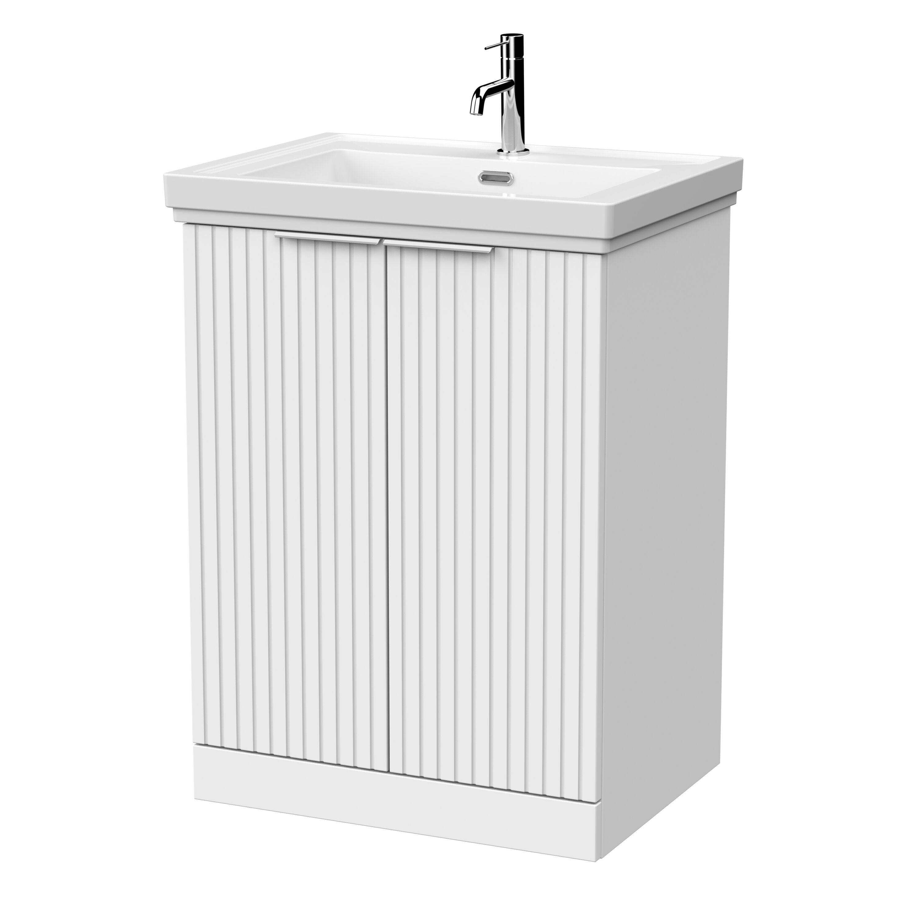 nuie Lux Flume 600mm 2-Door Floor Standing Unit with Traditional Fireclay Basin - 1 Tap Hole - Matt White
