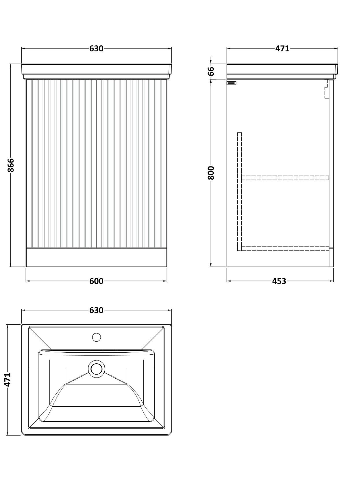 Flume 600mm 2-Door Floor Standing Unit with Traditional Fireclay Basin - 1 Tap Hole