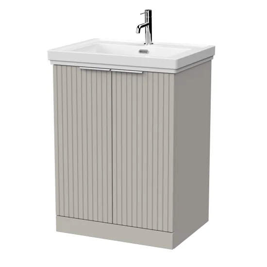 nuie Lux Flume 600mm 2-Door Floor Standing Unit with Traditional Fireclay Basin - 1 Tap Hole - Pebble Grey