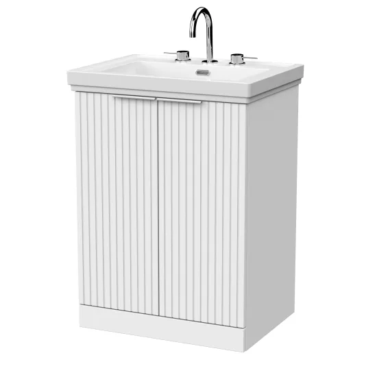 nuie Lux Flume 600mm 2-Door Floor Standing Unit with Traditional Fireclay Basin - 3 Tap Holes - Matt White