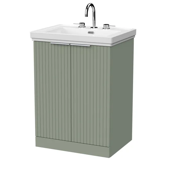 nuie Lux Flume 600mm 2-Door Floor Standing Unit with Traditional Fireclay Basin - 3 Tap Holes - Fern Green