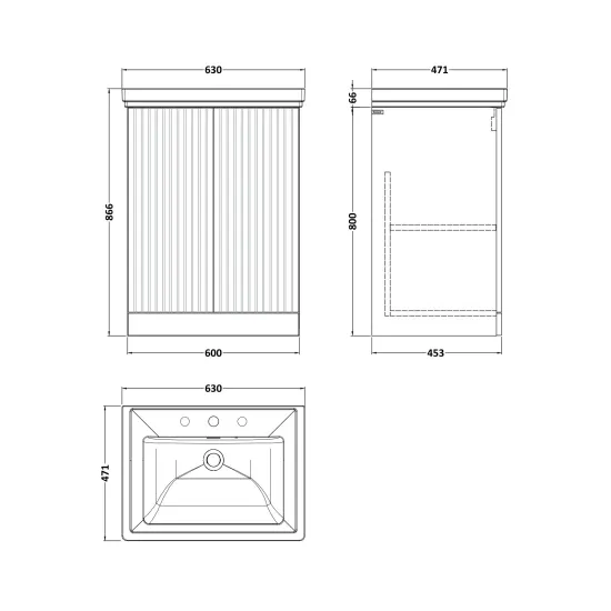 Flume 600mm 2-Door Floor Standing Unit with Traditional Fireclay Basin - 3 Tap Holes