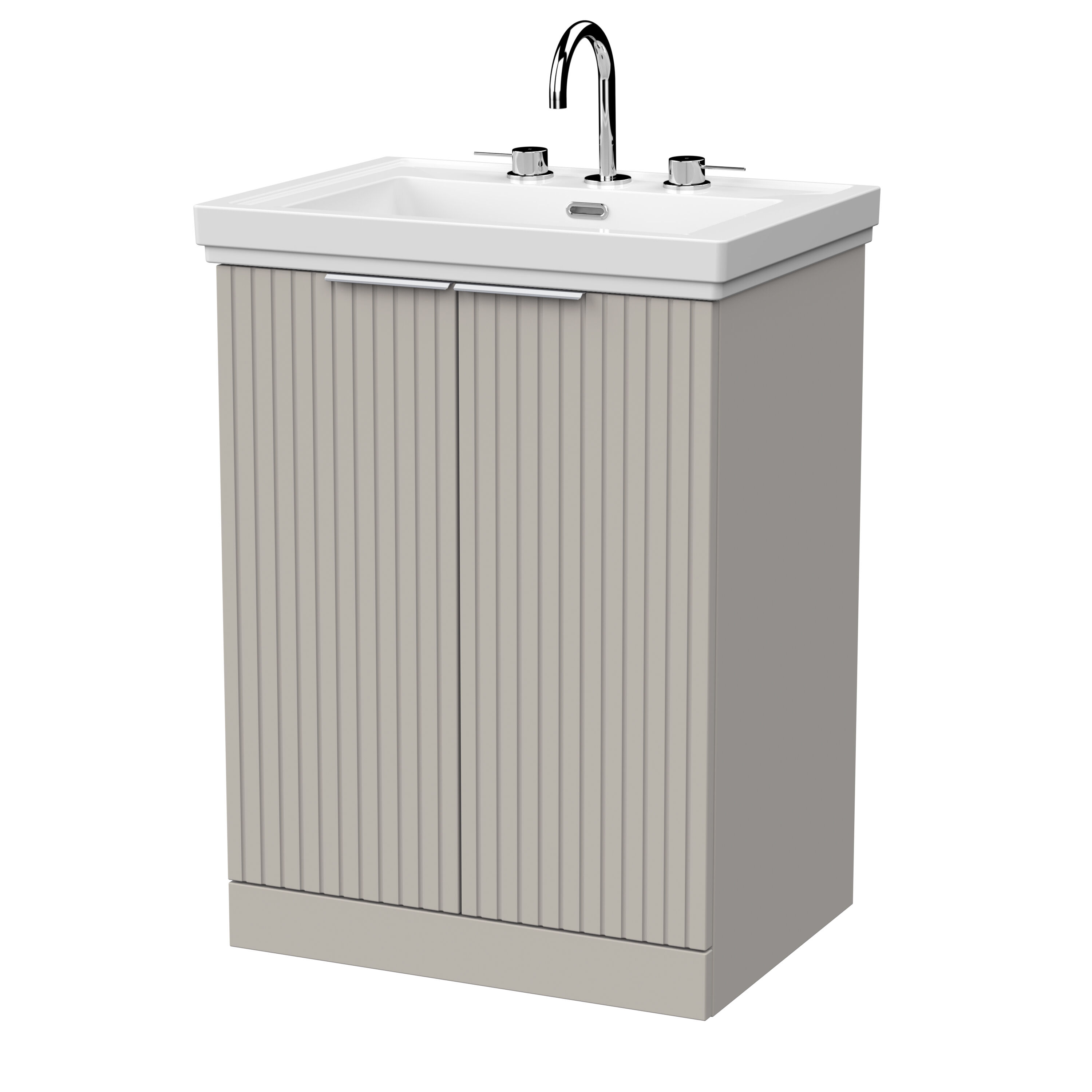 nuie Lux Flume 600mm 2-Door Floor Standing Unit with Traditional Fireclay Basin - 3 Tap Holes - Pebble Grey