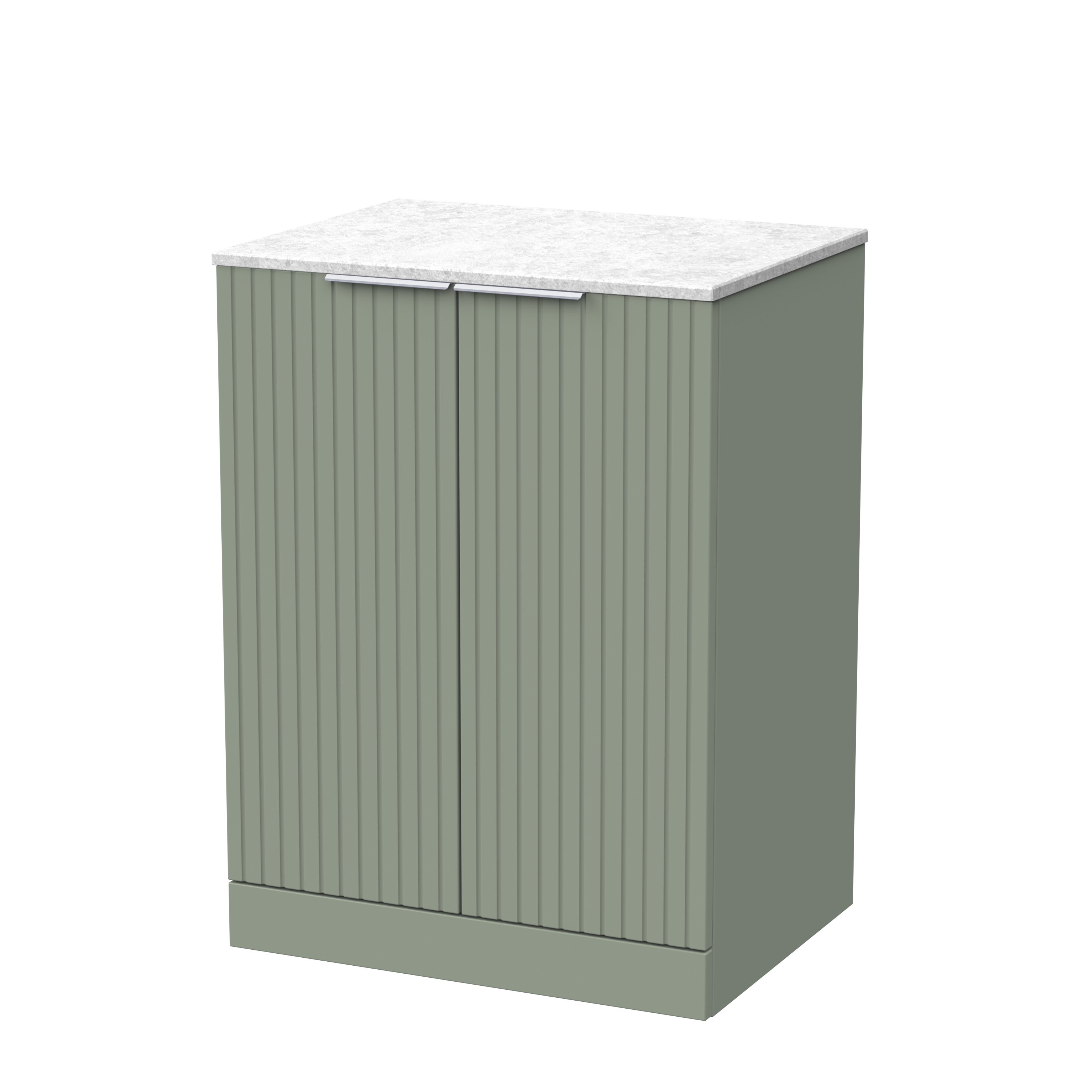 nuie Lux Flume 600mm 2-Door Floor Standing Unit with White Marble Top - Fern Green