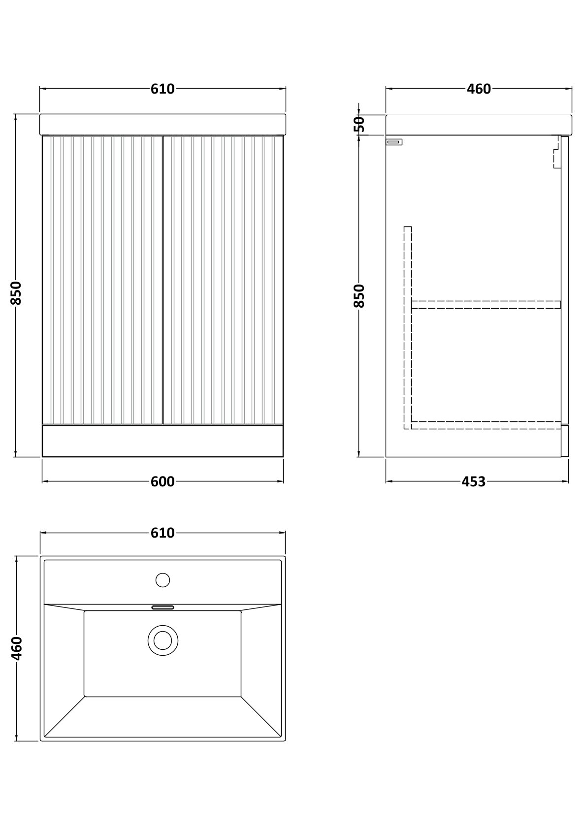 Flume 600mm 2-Door Floor Standing Unit withThin-Edge Basin - 1 Tap Hole