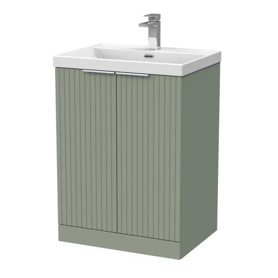 nuie Lux Flume 600mm 2-Door Floor Standing Unit withThin-Edge Basin - 1 Tap Hole - Fern Green