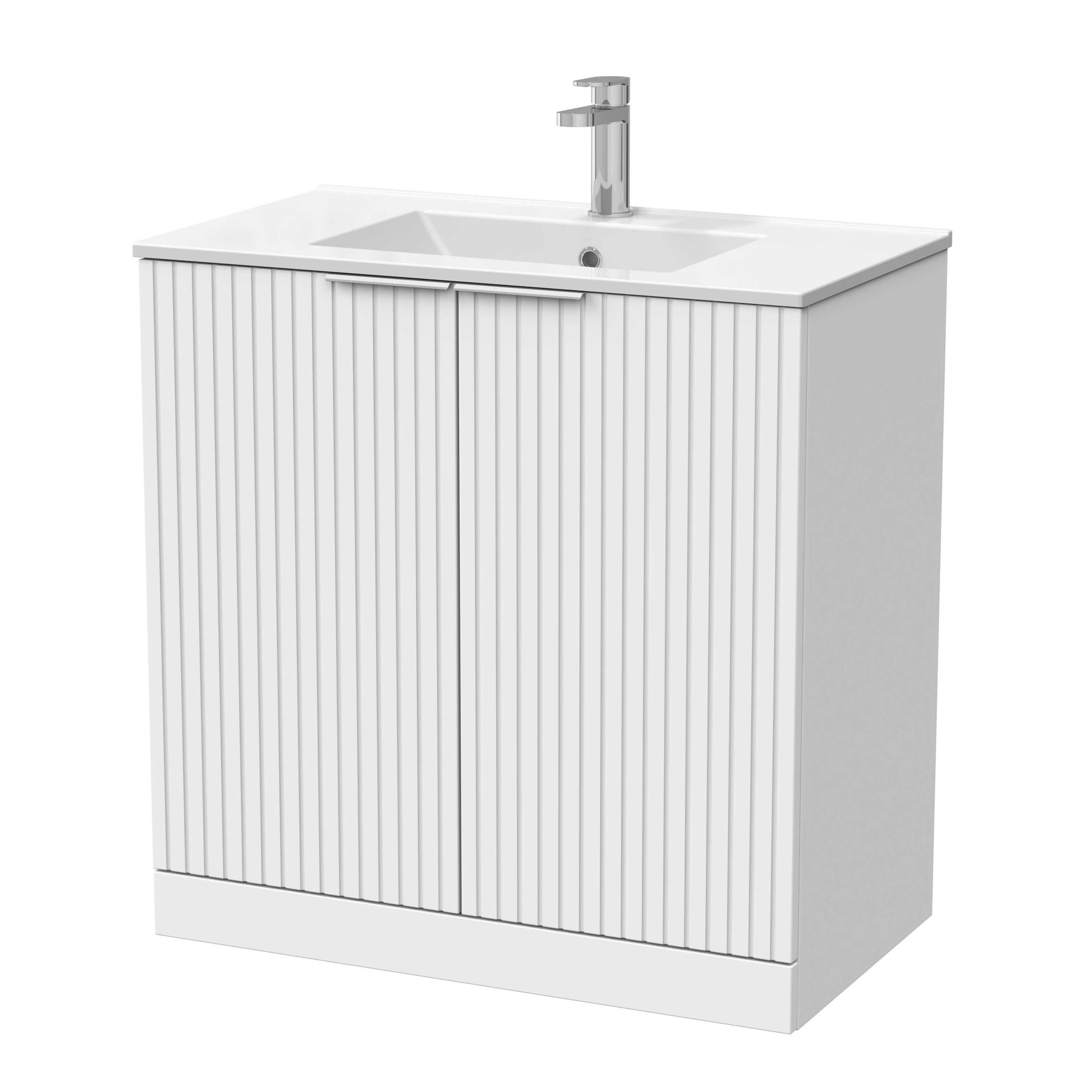 nuie Lux Flume 800mm 2-Door Floor Standing Unit with 1 Tap Hole Minimalist Basin Top - Matt White