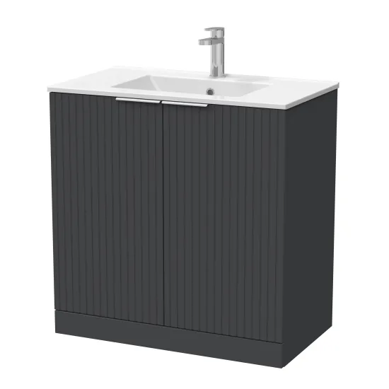 nuie Lux Flume 800mm 2-Door Floor Standing Unit with 1 Tap Hole Minimalist Basin Top - Soft Black