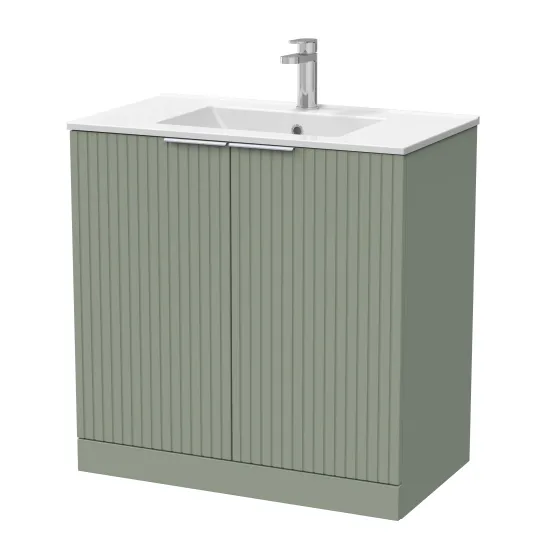 nuie Lux Flume 800mm 2-Door Floor Standing Unit with 1 Tap Hole Minimalist Basin Top - Fern Green