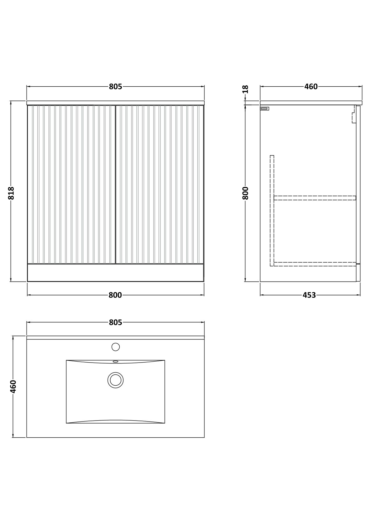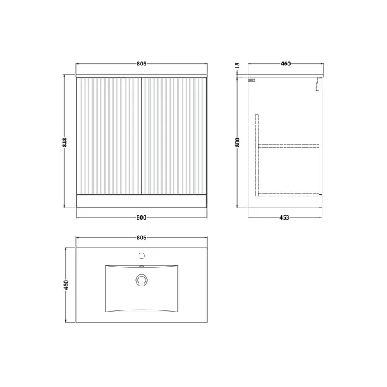 Flume 800mm 2-Door Floor Standing Unit with 1 Tap Hole Minimalist Basin Top