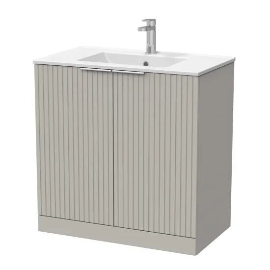 nuie Lux Flume 800mm 2-Door Floor Standing Unit with 1 Tap Hole Minimalist Basin Top - Pebble Grey