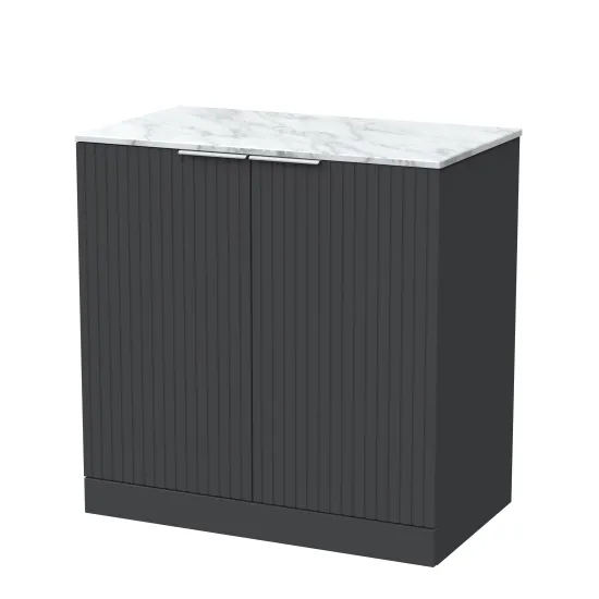 nuie Lux Flume 800mm 2-Door Floor Standing Unit with Carrera Marble Top - Soft Black