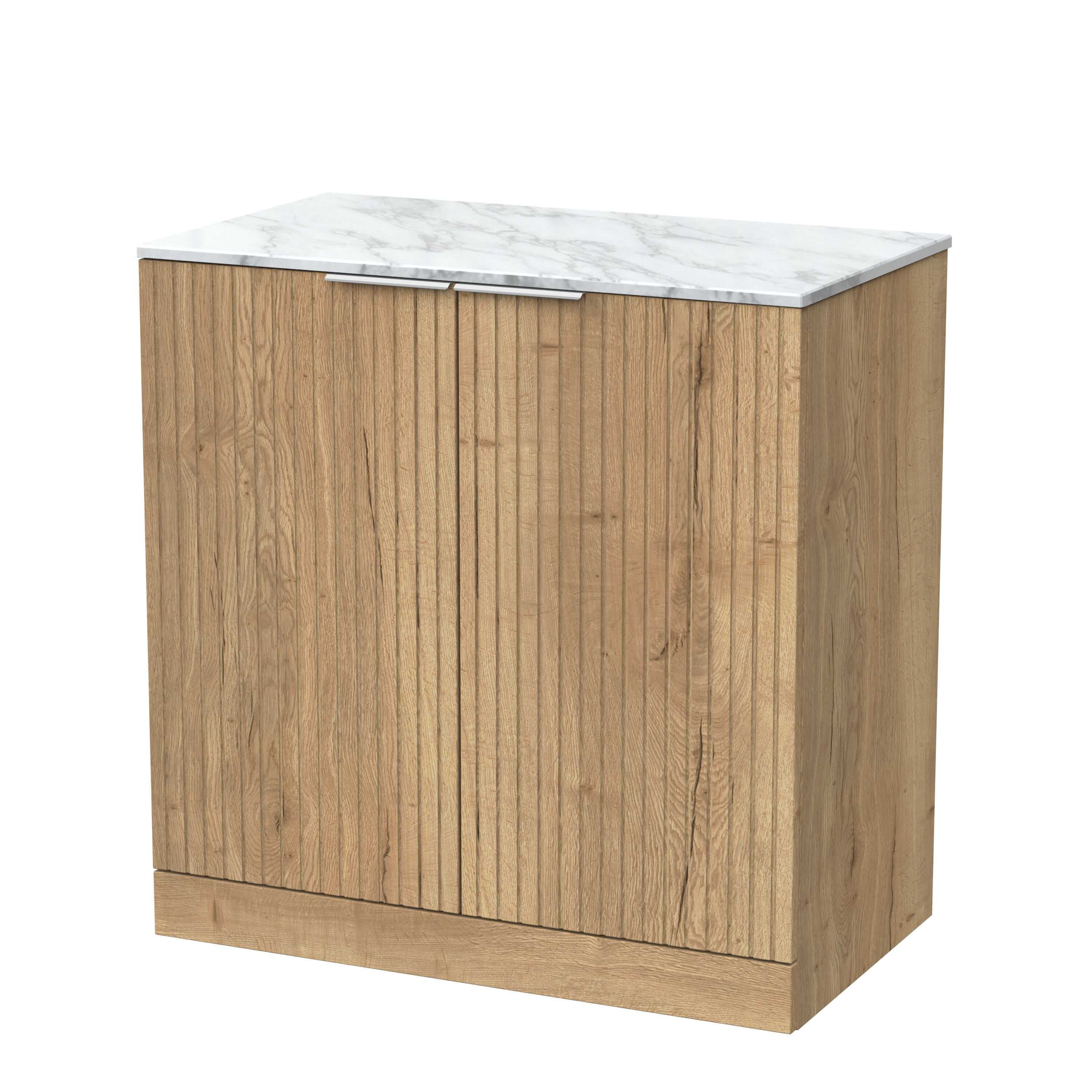 nuie Lux Flume 800mm 2-Door Floor Standing Unit with Carrera Marble Top - Autumn Oak