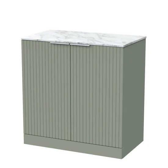nuie Lux Flume 800mm 2-Door Floor Standing Unit with Carrera Marble Top - Fern Green
